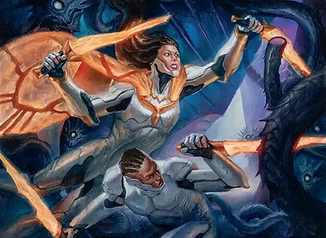 Before I begin this piece of Edge of Eternities, I’d like to direct you to a different piece of Edge of Eternities writing that I published recently: “Edge of Eternities and the Power of Difficulty” on Hipsters of the Coast. The article takes a look at Seth Dickinson’s astonishingly good and sometimes challenging Edge of Eternities web fiction, and makes the case that, in fact, difficult writing is a great tool for building a fantasy world. It was a real delight to work with everyone at Hipsters, and I hope you give the article a read!